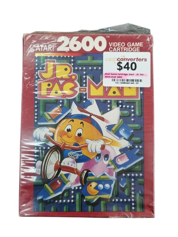 This classic Atari 2600 game cartridge lets you play the iconic JR. PAC-MAN. Featuring the beloved Pac-Man character in a new adventure, this game provides hours of family-friendly entertainment. With simple yet engaging gameplay, it's a nostalgic and fun addition to any retro gaming collection.