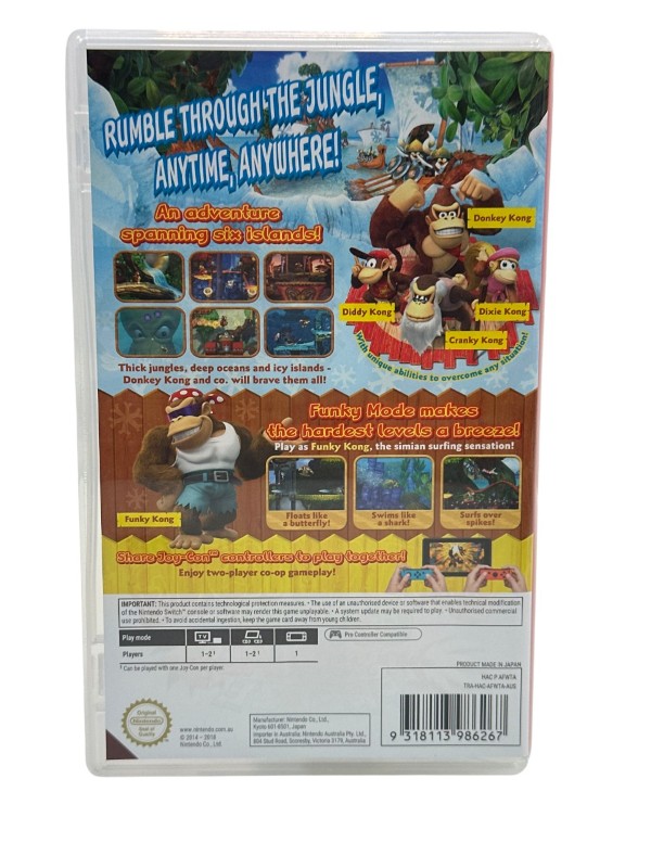 This classic Nintendo game cartridge offers an exciting and immersive platforming adventure. Donkey Kong Country: Tropical Freeze takes players on a thrilling journey through beautifully-crafted tropical environments, challenging them with a variety of obstacles and enemies. With its vibrant visuals, engaging gameplay, and beloved characters, this title is sure to provide hours of enjoyment for both casual and seasoned gamers.