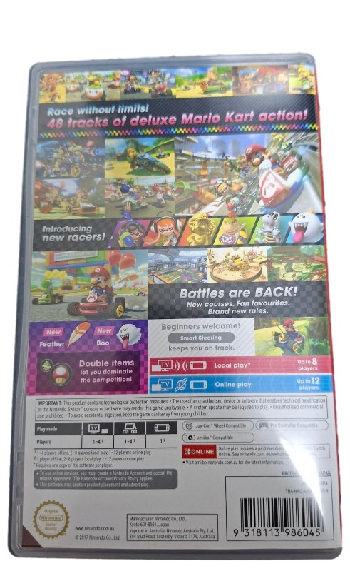 This Nintendo Switch game cartridge for Mario Kart Deluxe 8 is in good condition with little sign of wear. Enjoy the classic Mario Kart gameplay on your Nintendo Switch, with vibrant graphics and addictive multiplayer racing. Race as your favourite Nintendo characters and master the various tracks and power-ups.