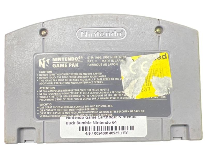 This Nintendo 64 game cartridge for Buck Bumble offers an engaging gaming experience. Featuring the Nintendo brand, this G-rated title delivers fun and entertainment for players of all ages. The cartridge functions as expected, though it may exhibit some light cosmetic wear from previous use.
