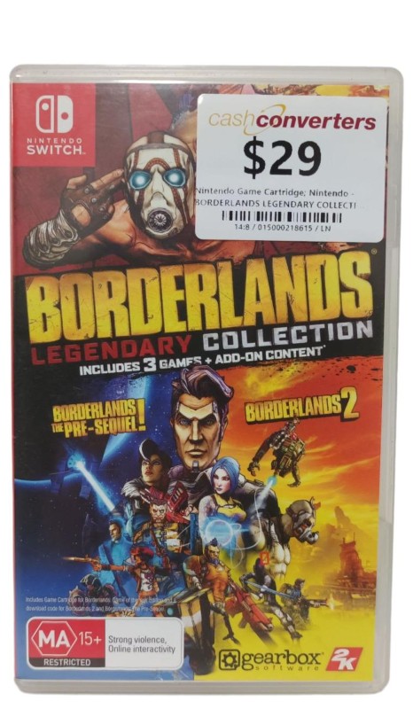 This Nintendo Switch game cartridge contains the Borderlands Legendary Collection, featuring the acclaimed Borderlands franchise. With an MA15+ rating, this collection offers an immersive and thrilling gaming experience for mature audiences. The item is in good condition, with little sign of wear, ensuring an enjoyable and reliable gameplay experience.