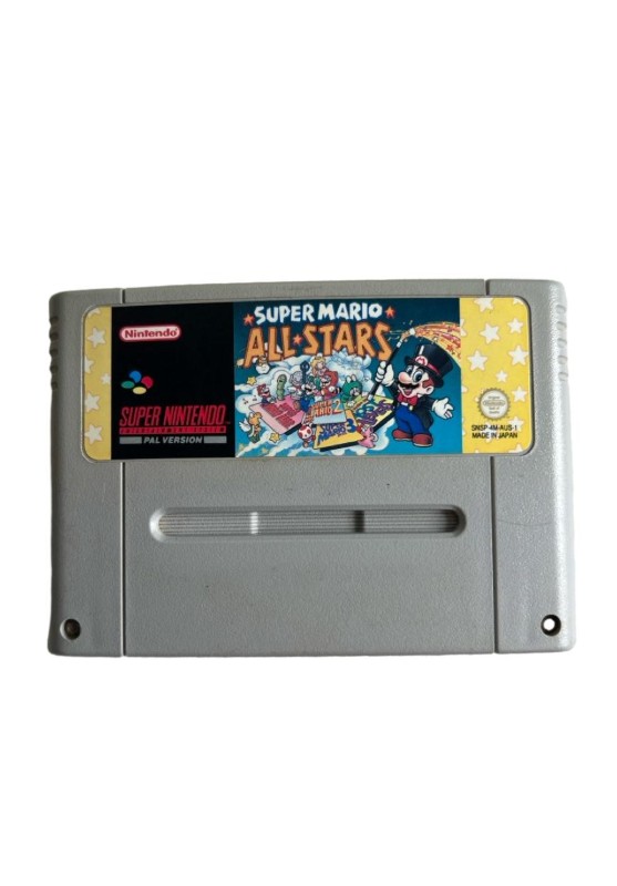 Enjoy a classic gaming experience with this Super Nintendo cartridge of Super Mario All-Stars. This beloved collection features remastered versions of the original Super Mario Bros. games, including Super Mario Bros., Super Mario Bros. 2, Super Mario Bros. 3, and Super Mario World. Immerse yourself in the iconic platforming gameplay and iconic characters that have delighted generations of players.
