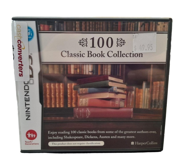 This classic Nintendo DS game cartridge offers a vast collection of 100 beloved books in one convenient package. Featuring a diverse selection of literary masterpieces, this title provides endless hours of reading enjoyment and intellectual stimulation. Whether you're a voracious reader or simply looking to expand your literary horizons, this game is sure to delight.