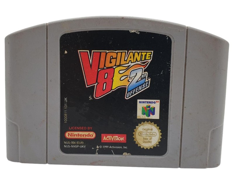 This classic Nintendo 64 game cartridge for VIGILANTE 8 2ND OFFENSIVE offers an exciting and action-packed gaming experience. Rated PG, this title is suitable for players of all ages. While the cartridge may show some light cosmetic wear, it remains fully functional and ready to provide hours of entertainment. Whether you're a long-time fan of the series or a newcomer to the franchise, this game is sure to deliver thrilling vehicular combat and engaging gameplay.