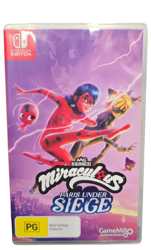 This Nintendo Switch game cartridge for "Miraculous Paris Under Siege" offers an exciting adventure for players of all ages. Rated PG, the game features engaging gameplay and charming visuals that transport you to the vibrant world of Miraculous. While the cartridge shows light cosmetic wear, it remains fully functional and ready to provide hours of entertainment.