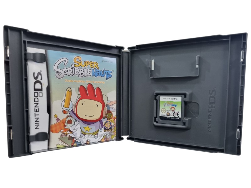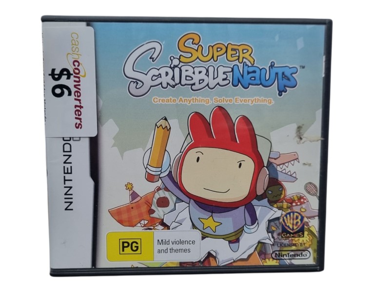 This Nintendo DS game cartridge for "super scribblenaughts" offers a delightful and imaginative gaming experience. With a G rating, it's suitable for all ages. The cartridge functions well, though it may show some light cosmetic wear from previous use.