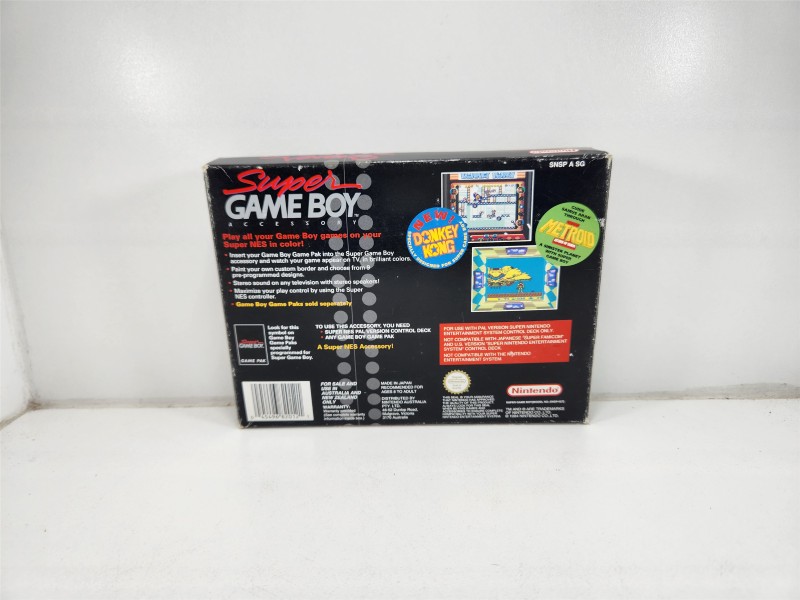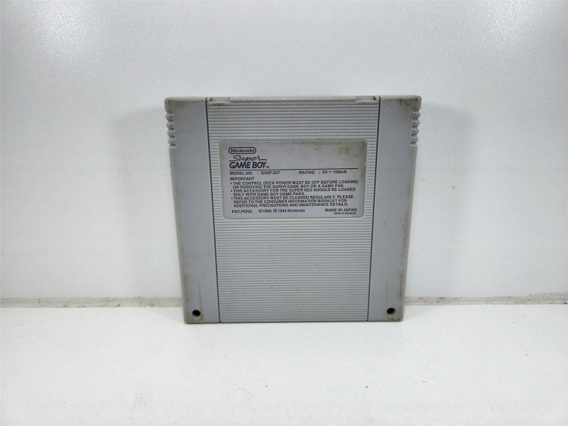 This classic Nintendo Game Boy cartridge, SUPER GAMEBOY, allows you to play your favorite Game Boy games on your Super Nintendo Entertainment System. With a G rating, this cartridge is suitable for all ages. Though it may show some light cosmetic wear, it remains fully functional and ready to provide hours of nostalgic gaming enjoyment.