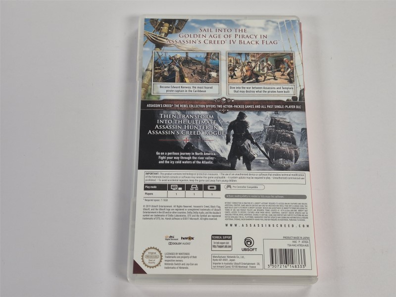This Nintendo Switch game cartridge contains the Assassin's Creed: The Rebel Collection, a thrilling action-adventure experience. Featuring two acclaimed Assassin's Creed titles, this collection delivers hours of immersive gameplay set in captivating historical settings. With its engaging narrative, diverse missions, and refined combat mechanics, this game is sure to captivate seasoned fans and newcomers alike.