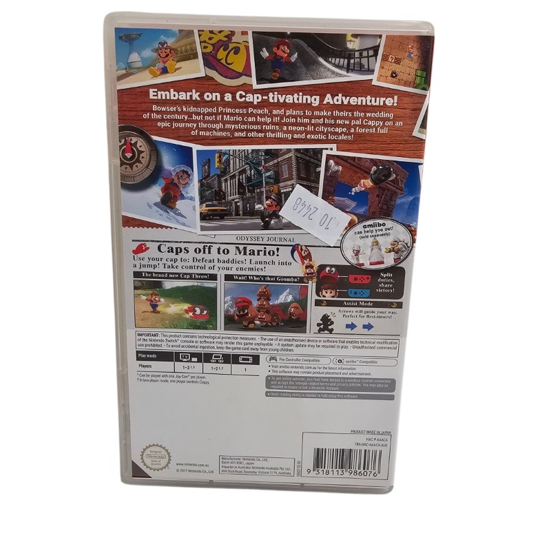 Embark on an exhilarating adventure with the iconic plumber, Mario, in this captivating Nintendo Switch game, Super Mario Odyssey. Explore a vast, open world filled with vibrant landscapes and whimsical characters as you guide Mario on his quest to rescue Princess Peach. Utilise Mario's versatile abilities, including the power to possess various objects and enemies, to overcome obstacles and uncover hidden secrets. With its charming visuals, engaging gameplay, and endless replayability, this title is a must-have for any Nintendo Switch enthusiast.