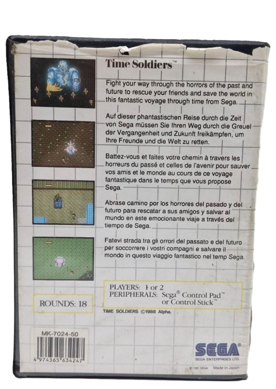 This classic Master System game from Sega takes you on an action-packed adventure through time. Immerse yourself in the thrilling world of Time Soldiers, where you'll face off against a variety of enemies and obstacles. With its engaging gameplay and retro charm, this cartridge is sure to provide hours of nostalgic entertainment for any Sega enthusiast.