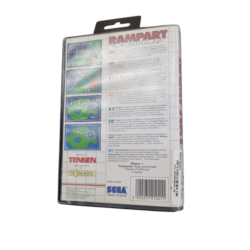 Immerse yourself in the classic arcade action of Rampart for the Sega Master System. This retro game cartridge delivers hours of strategic fortress-building and intense naval combat. With its timeless gameplay and vibrant visuals, Rampart is a must-have for any Sega enthusiast's collection.
