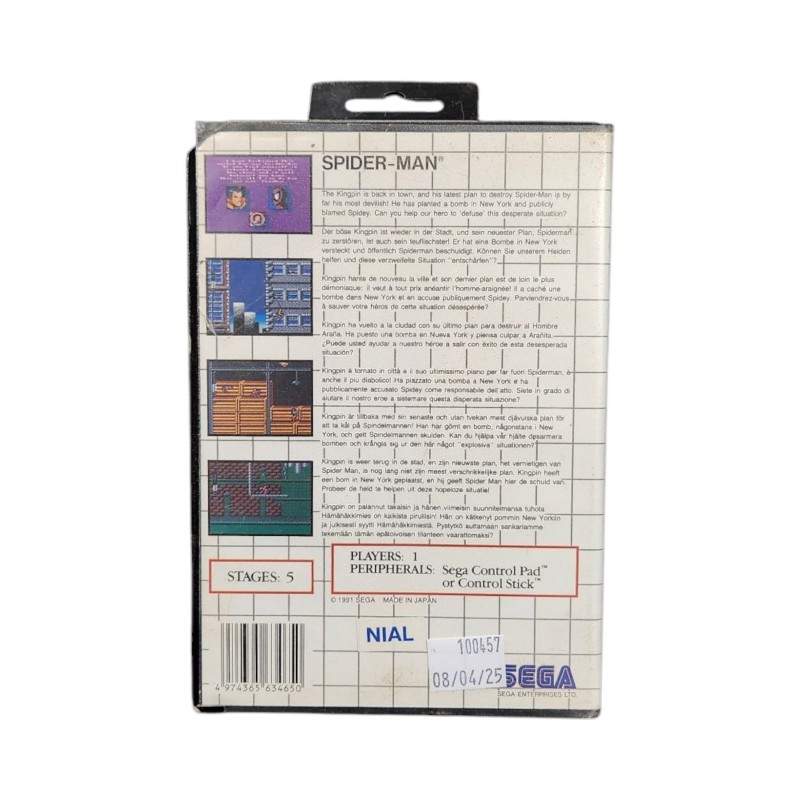 This classic Sega Master System cartridge features the iconic web-slinging superhero, Spider-Man. Developed for the Sega Master System console, this game allows you to take on the role of the friendly neighbourhood Spider-Man and embark on an exciting adventure. With a PG rating, this title is suitable for all ages to enjoy.