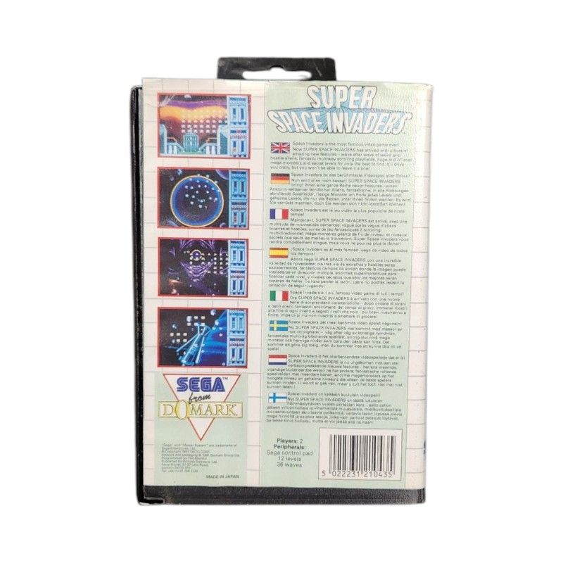 This classic Sega Master System cartridge of Super Space Invaders provides hours of retro gaming fun. Blast your way through waves of invading aliens in this iconic arcade-style shoot 'em up. With vibrant graphics and challenging gameplay, this title is sure to delight fans of the genre.