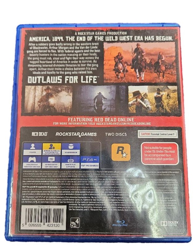 Experience the epic open-world adventure of Red Dead Redemption 2. This immersive game disc transports you to the rugged American frontier, where you'll embark on a captivating journey filled with thrilling moments and unforgettable characters. Explore the vast and detailed landscape, engage in intense gunfights, and uncover the secrets of the outlaw life.