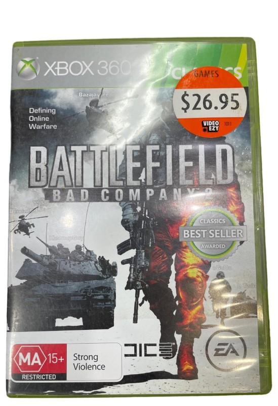 This Xbox 360 disc of Battlefield Bad Company 2 is a thrilling military shooter that immerses you in intense combat. Featuring stunning visuals, dynamic environments, and a compelling single-player campaign, this game delivers an exhilarating experience. With a MA15+ rating, it's suitable for mature audiences.