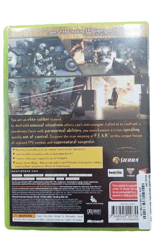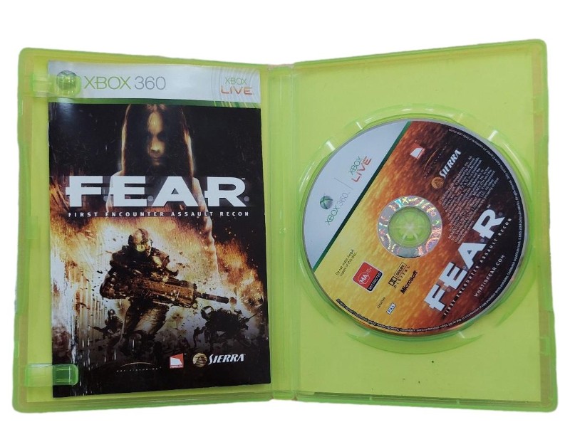 This Microsoft Xbox 360 game disc for "FEAR" provides an intense and immersive first-person shooter experience. Featuring high-quality graphics and thrilling gameplay, this title will challenge your reflexes and keep you on the edge of your seat. With an MA15+ rating, this game is suitable for mature audiences only.