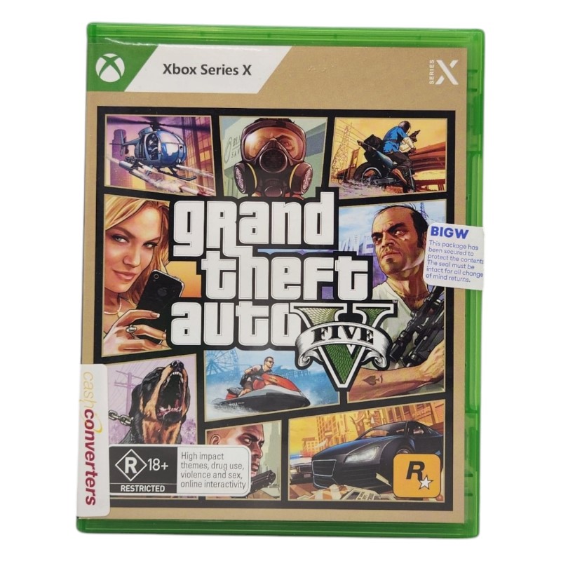 Enjoy the iconic open-world action of Grand Theft Auto V on your Xbox One console. This pre-owned game disc features the thrilling story of three interconnected protagonists as they navigate the criminal underworld of Los Santos. With a vast, detailed world to explore and a wealth of missions and activities, GTA V delivers an immersive and engaging gameplay experience.