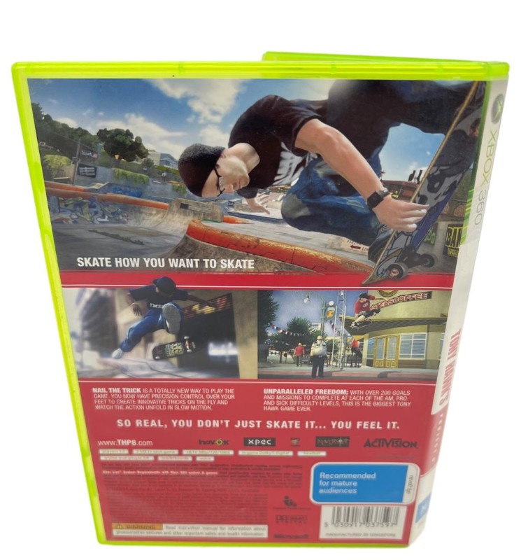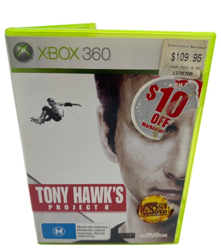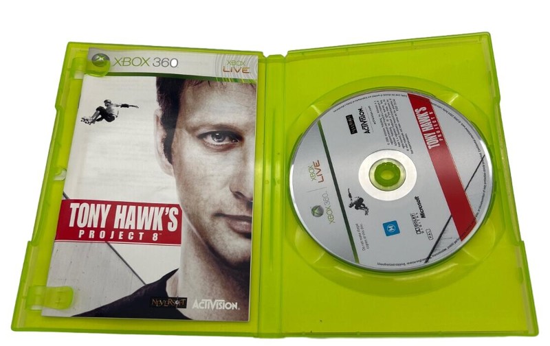 This pre-owned Microsoft Xbox 360 game disc offers the thrilling Tony Hawk's Project 8 experience. Featuring an M rating, this title delivers an immersive skateboarding adventure with dynamic gameplay and impressive graphics. Although the disc may have a few light scratches, it remains in good condition and ready to provide hours of entertainment.
