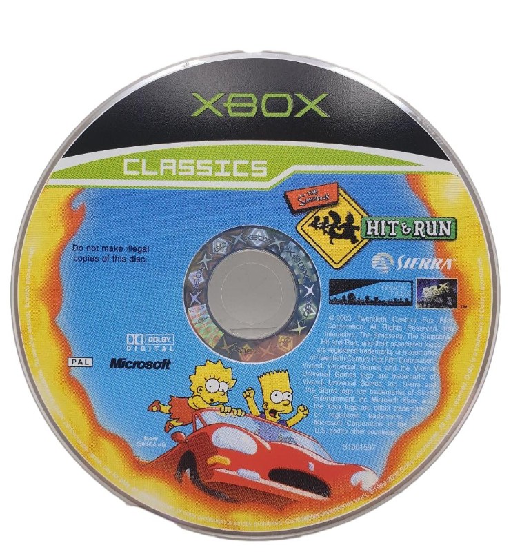 This Xbox (Original) game disc for The Simpsons Hit & Run offers an engaging and humorous gaming experience. With its G rating, it's suitable for all ages. The disc features a few light scratches, but remains in good condition and ready to provide hours of entertainment.