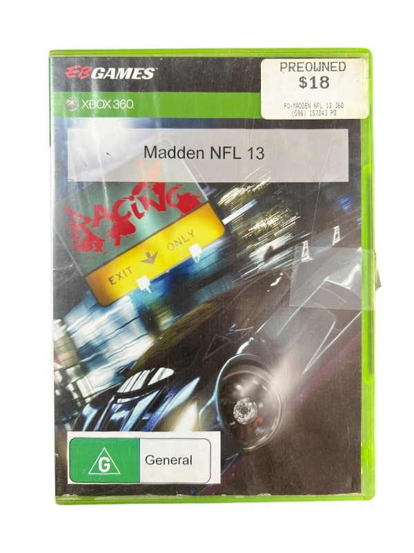 This Xbox 360 game disc for MADDEN NFL 13 is a great addition to any sports gaming collection. With its engaging gameplay and realistic graphics, it offers an immersive football experience. The game is rated PG, making it suitable for a wide range of players.