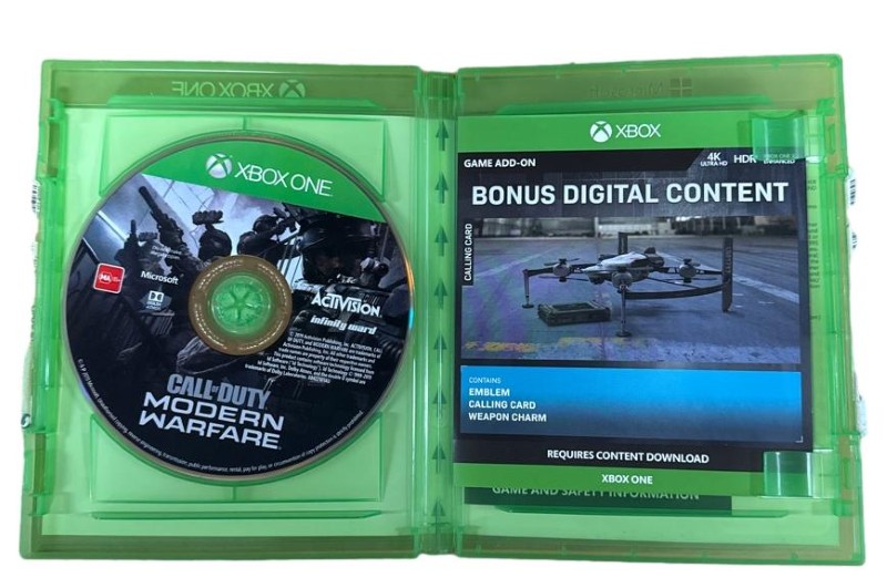 This Microsoft Xbox One game disc for Call of Duty: Modern Warfare delivers intense first-person shooter action. Experience the gripping single-player campaign or engage in thrilling multiplayer battles. With its MA15+ rating, this title is recommended for mature audiences.