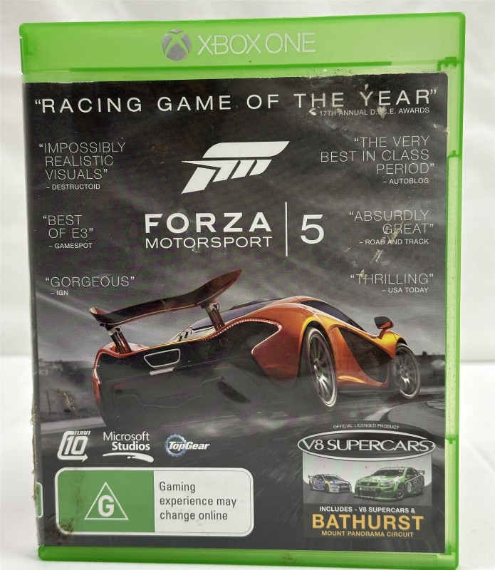 This high-octane racing game from Microsoft's acclaimed Forza series delivers an exhilarating driving experience on the Xbox One. Featuring stunning visuals, a vast selection of meticulously detailed vehicles, and challenging tracks, Forza 5 Motorsport immerses players in the thrill of competitive racing. Whether you're a seasoned sim-racing enthusiast or a newcomer to the genre, this title offers an engaging and accessible gameplay experience for all skill levels.