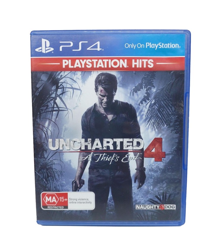 This used Uncharted 4: A Thief's End game disc for the PlayStation 4 offers an immersive action-adventure experience. Embark on a thrilling journey with Nathan Drake as he pursues a historical conspiracy while confronting his past. Featuring stunning visuals, captivating storytelling, and challenging gameplay, this title will keep you on the edge of your seat. Whether you're a long-time fan or new to the series, this pre-owned copy is a must-have for any PlayStation 4 collection.