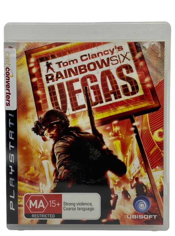 This pre-owned Sony Playstation 3 game disc of Tom Clancy's - Rainbow Six: Vegas offers an immersive tactical shooter experience. The game features intense first-person combat, strategic team-based gameplay, and a gripping storyline set in the iconic Las Vegas strip. With its MA15+ rating, this title is suitable for mature audiences.