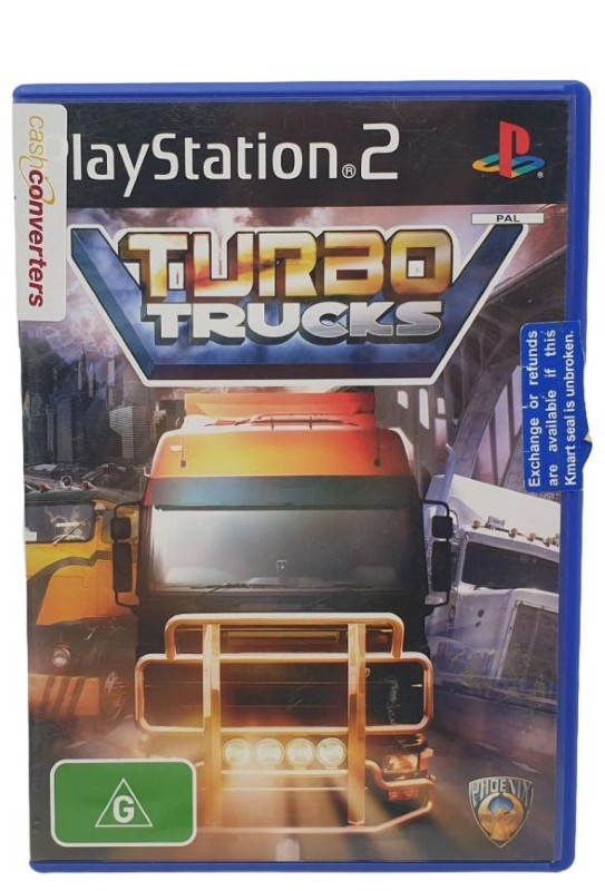This pre-owned Sony PlayStation 2 game disc features the thrilling title "TURBO TRUCKS". Rated G, this game offers family-friendly entertainment for all ages. With a few light scratches, the disc is in good condition and ready to provide hours of engaging gameplay.