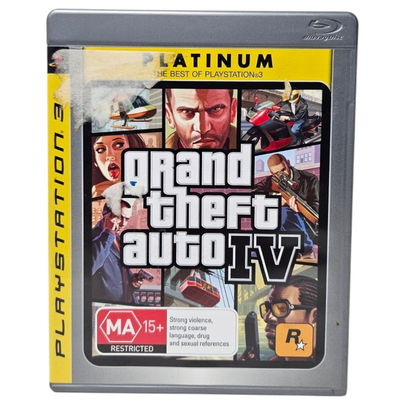 This Sony Playstation 3 game disc features the popular open-world action-adventure title, GTA 4. With its engaging storyline, expansive world, and thrilling gameplay, this MA15+ rated title offers an immersive gaming experience. However, please note that the disc has accumulated some light scratches over time.