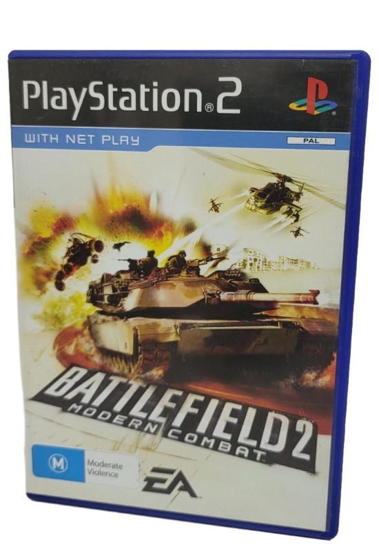 This Sony Playstation 2 game disc for Battlefield 2 Modern Combat provides an immersive first-person shooter experience. With its MA15+ rating, this title is suitable for mature audiences. While the disc shows some light scratches from previous use, it remains in playable condition. This secondhand game offers a thrilling military combat simulation that fans of the Battlefield franchise are sure to enjoy.