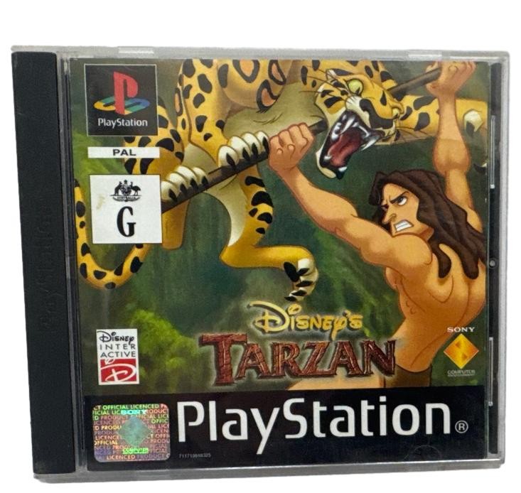 Explore the lush jungle world of Disney's Tarzan on this classic PlayStation game disc. Immerse yourself in the thrilling adventures of the iconic ape-man as you navigate through vibrant environments, confront formidable foes, and uncover the mysteries of the wild. With the included manual, you'll have all the guidance you need to embark on this captivating journey.