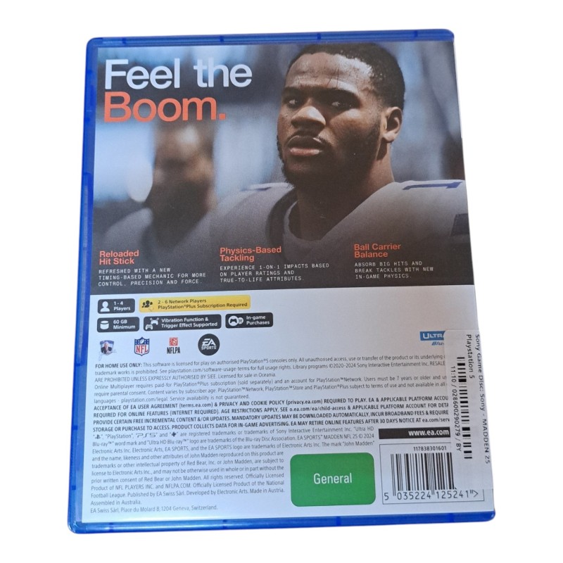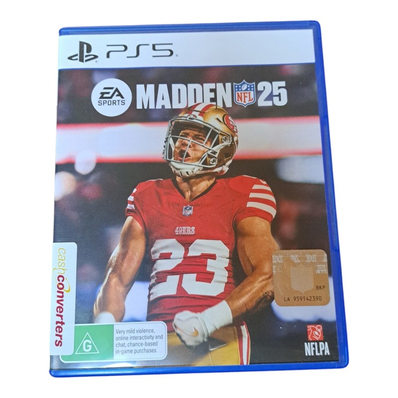 This pre-owned PlayStation 5 game disc for MADDEN 25 is in good condition and ready to provide hours of entertainment. Featuring the latest edition of the iconic American football simulation, this title delivers an immersive gaming experience with realistic graphics and gameplay. Whether you're a seasoned player or new to the franchise, this game is sure to captivate sports fans of all skill levels.