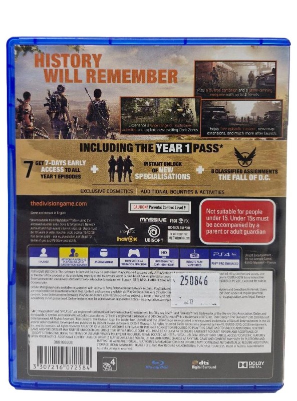 This pre-owned PlayStation 4 game disc offers an engaging open-world experience. The Division 2 immerses players in a rich and detailed post-apocalyptic setting, challenging them to navigate the ruins of Washington D.C. and engage in thrilling tactical combat. With a mature rating, the game delivers a gritty and realistic portrayal of a society in crisis. While the disc shows a few light scratches, it remains in good condition and ready to provide hours of captivating gameplay.