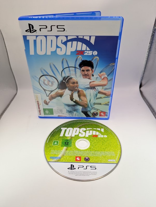 This pre-owned PlayStation 5 game disc for TOPSPIN 2K25 offers an exciting tennis gaming experience. With a G rating, it's suitable for all ages to enjoy.