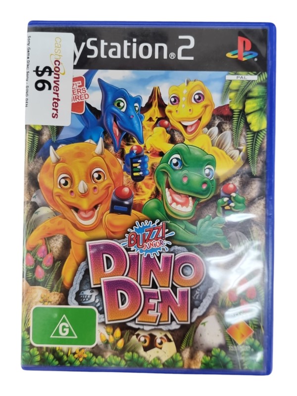 This Sony PlayStation 2 game disc for "DINO DEN" provides an exciting adventure in a prehistoric world. With a family-friendly G rating, this title is suitable for all ages. The disc is in good condition with only a few light scratches, ensuring a smooth and enjoyable gaming experience.