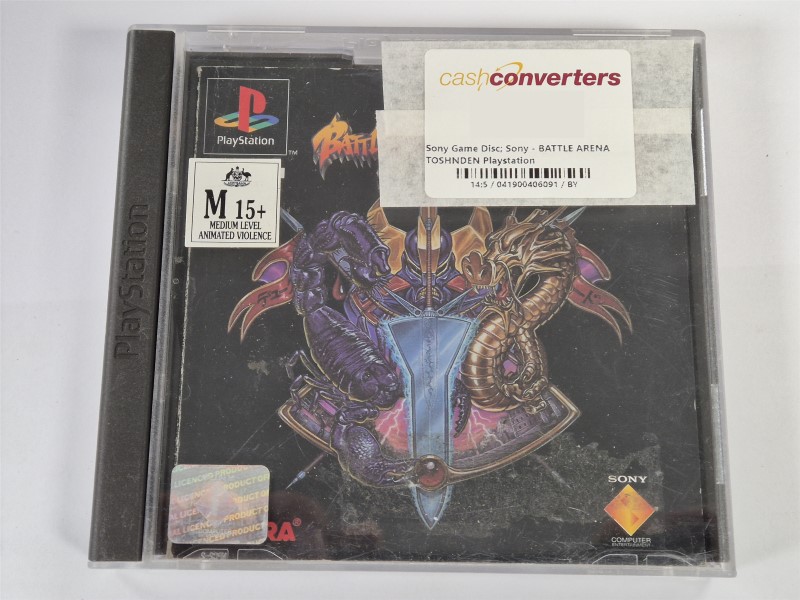 This classic PlayStation game disc from Sony offers an immersive gaming experience. BATTLE ARENA TOSHNDEN is a thrilling title suitable for all ages, with a G rating.