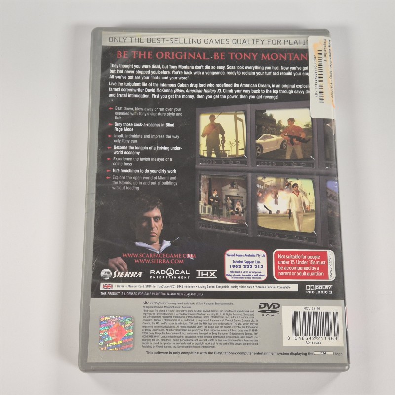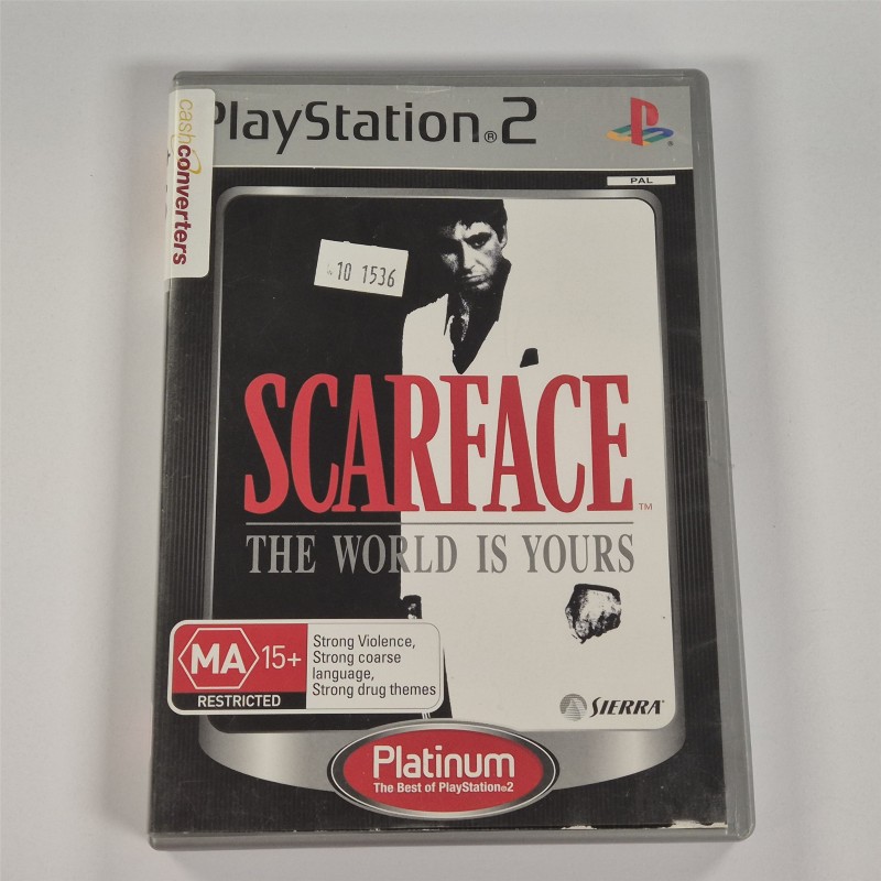 This pre-owned Playstation 2 game disc of Scarface offers an immersive gaming experience. With its gritty storyline and intense action, this MA15+ rated title delivers hours of thrilling entertainment. While the disc may have a few light scratches, it remains in good condition and ready to be enjoyed.