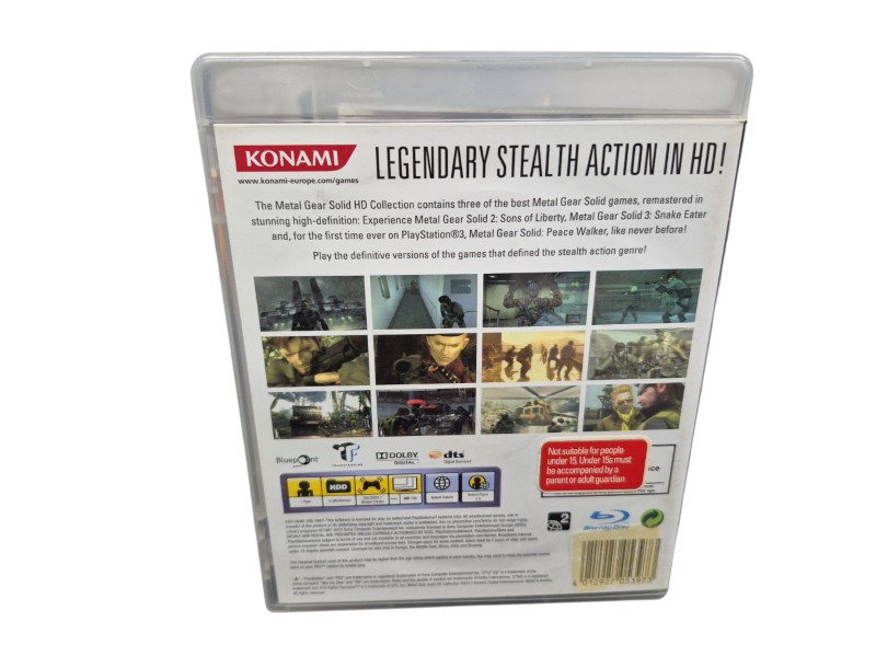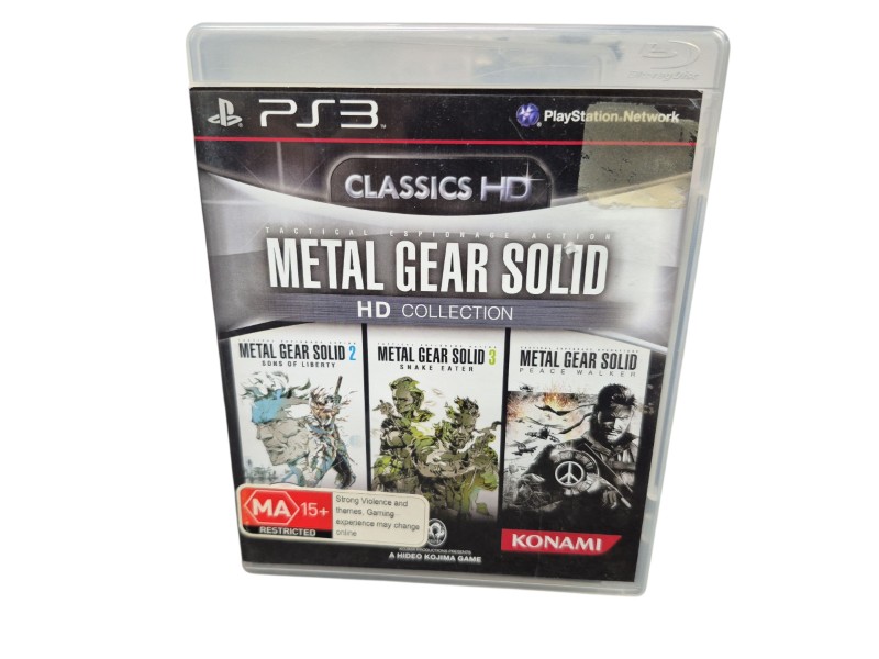 This Sony PlayStation 3 game disc features the acclaimed METAL GEAR SOLID HD COLLECTION. Remastered in high definition, this compilation includes three classic Metal Gear Solid titles - Metal Gear Solid 2: Sons of Liberty, Metal Gear Solid 3: Snake Eater, and Metal Gear Solid: Peace Walker. Experience the iconic stealth-action gameplay and captivating storylines that have made the Metal Gear Solid series a beloved franchise. Rated MA15+.