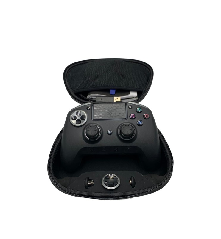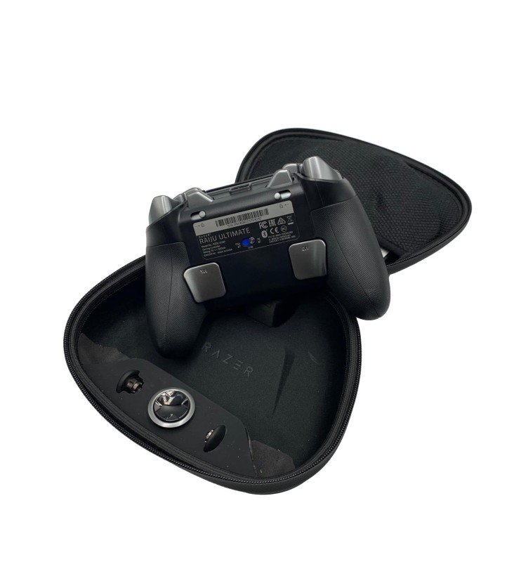 This Razer Raiju Ultimate PS4 controller is a premium gaming peripheral designed to elevate your gameplay experience. Crafted with precision and performance in mind, it features customisable buttons, triggers, and joysticks, allowing you to tailor the controls to your preferred playstyle. The controller's sleek and ergonomic design ensures comfortable extended gaming sessions, while the included carrying case and cord provide convenient portability and connectivity. This controller is compatible with the PlayStation 4 console, offering a seamless integration for your gaming needs.