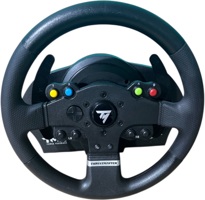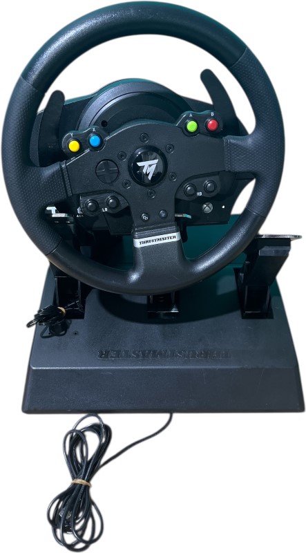 This Thrustmaster TMX Pro Force Feedback Racing Wheel for Xbox One provides an immersive gaming experience with its realistic force feedback technology. The wheel is designed to deliver precise control and responsiveness, enhancing your racing simulation. With the included power supply, XBOX connection cable, and foot pedals, you'll have everything you need to take your gaming to the next level. While the wheel shows light cosmetic wear, it remains fully functional and ready to provide hours of thrilling gameplay.