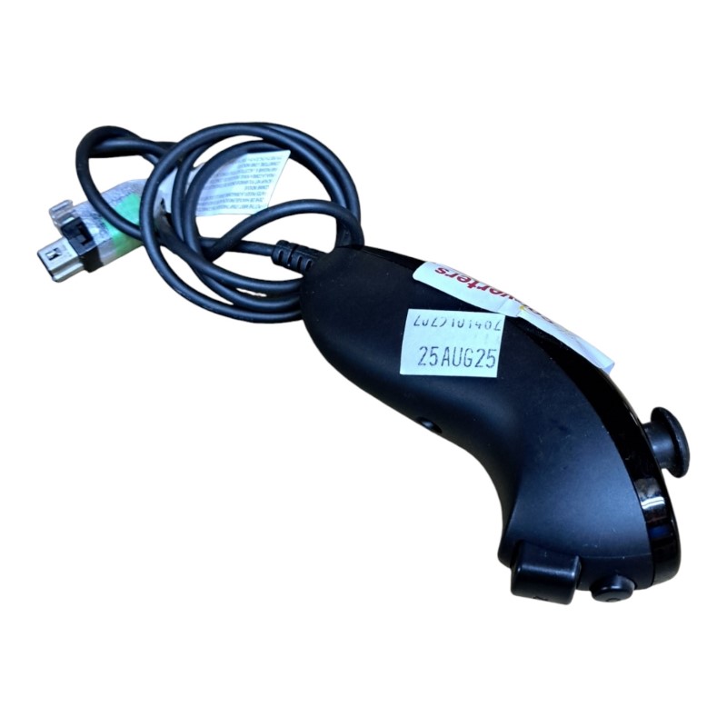 This Nintendo Wii nunchuck controller is a versatile gaming peripheral that offers a range of intuitive controls for an immersive gaming experience. Featuring a compact and ergonomic design, it seamlessly integrates with the Wii console to provide precise and responsive input. While it may exhibit some light cosmetic wear from previous use, the controller remains fully functional, allowing you to enjoy your favourite Wii titles with ease.