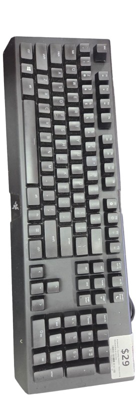This Razer Blackwidow X chroma gaming keyboard is a high-performance peripheral that offers an immersive gaming experience. With its responsive mechanical keys and customisable RGB backlighting, it allows you to tailor the aesthetics to your personal preferences. Despite some light cosmetic wear, the keyboard remains fully functional and ready to elevate your gaming setup.