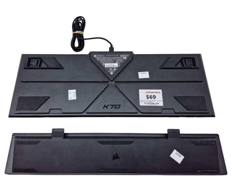 The CORSAIR RGB PRO K70 gaming keyboard offers an immersive gaming experience with its vibrant RGB backlighting and responsive mechanical keys. Designed for serious gamers, this keyboard features anti-ghosting technology and dedicated media controls for seamless in-game performance. With an extra pad included, this keyboard is ready to elevate your gaming setup.