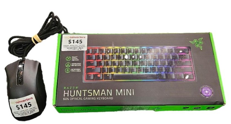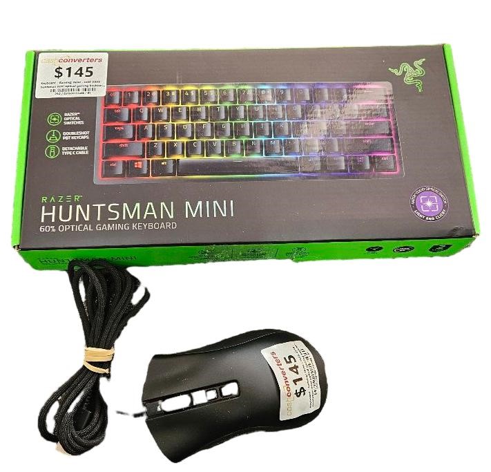 This compact Razer Huntsman Mini optical gaming keyboard is a high-performance peripheral that delivers a premium gaming experience. Featuring a tenkeyless design, it offers a minimalist footprint ideal for tight desk spaces. The optical switches provide rapid, responsive actuation for lightning-fast inputs, while the durable aluminium construction ensures long-lasting reliability. Bundled with a matching mouse, this set is the perfect choice for serious gamers seeking a sleek, portable setup.