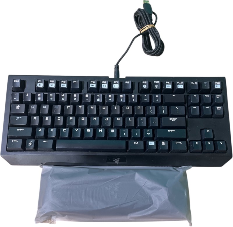 This sleek Razer Blackwidow Tournament Edition gaming keyboard offers a premium gaming experience. Featuring mechanical keys for responsive and precise input, it delivers exceptional performance for intense gaming sessions. The included Razer ergonomic mouse rest provides added comfort during extended use. With light cosmetic wear, this keyboard is in great condition and ready to elevate your gaming setup.