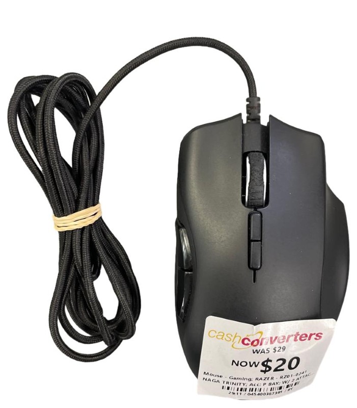 The Naga Trinity features customisable side panels for adaptable gameplay, ergonomic design for extended comfort, and reliable performance across multiple gaming genres. The mouse shows light cosmetic wear consistent with previous use but remains fully functional.