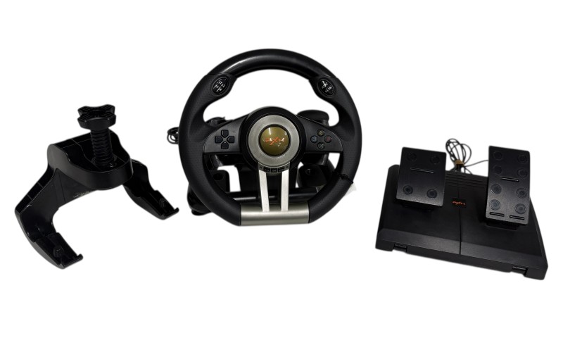 This PXN V3 Pro gaming steering wheel provides an immersive racing experience on PC, PS4, PS3, Xbox, and Nintendo Switch. With 180-degree rotation, vibration feedback, and included pedals, this accessory delivers a realistic driving simulation. The sturdy desk support frame ensures a secure setup. Whether you're a seasoned sim racer or just starting out, this wheel will elevate your gaming experience.