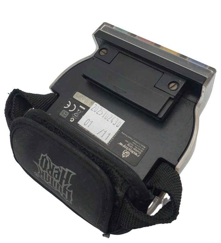 This Nintendo DS Guitar Hero on Tour Guitar Grip by Redoctane (model 95327.805) is a gaming accessory that enhances the Guitar Hero experience on your Nintendo DS. With its ergonomic design, it provides a comfortable and immersive gameplay experience. The grip features functions that allow you to fully engage with the game, while some light cosmetic wear indicates its previous use.