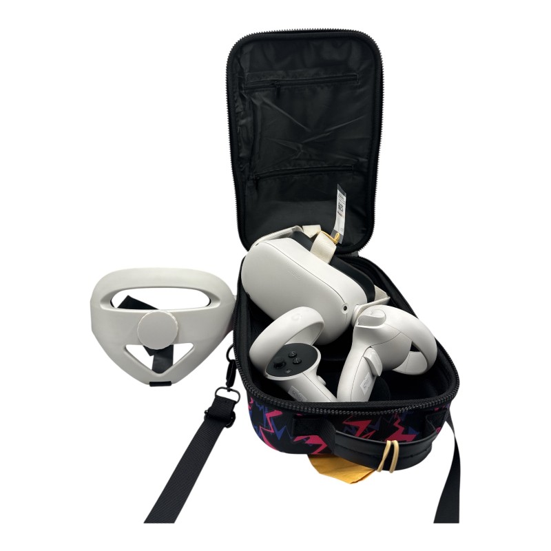 This powerful Meta Quest 2 VR headset delivers an immersive gaming experience. With a 128GB storage capacity, you'll have ample space for all your virtual reality adventures. Included are a protective case, two hand controllers, and a back support for enhanced comfort during extended play sessions. The headset is in good condition with minimal signs of wear, ensuring you can enjoy high-quality virtual reality without distractions.
